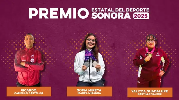 Sofía Ibarra (tiro deportivo) y Ricardo Campillo (karate) fueron elegidos ganadores del Premio Estatal del Deporte 2025 en las modalidades de Atleta y Entrenador, respectivamente; en Prospecto (15 años y menores), la distinción fue para la paratleta de lanzamientos Yalitzia Guadalupe Castillo, al recibir doce (12) votos.