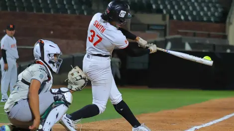 Con par de corredoras sobre las colchonetas, Morgan Smith tomó turno y se fue para la calle en un potente tablazo de cuatro esquinas.
