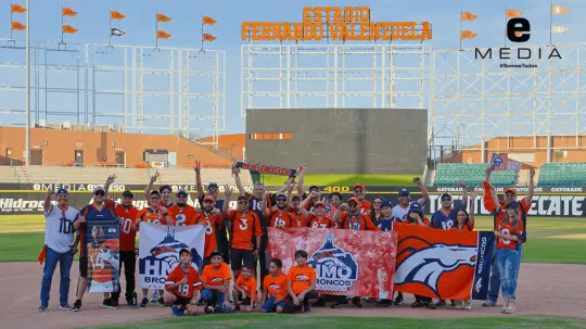 Un grupo de alrededor de 30 aficionados de los Denver Broncos de la NFL se reunió este fin de semana en el Estadio Fernando Valenzuela para tomarse la ya tradicional fotografía oficial que realizan año con año rumbo a una nueva temporada.