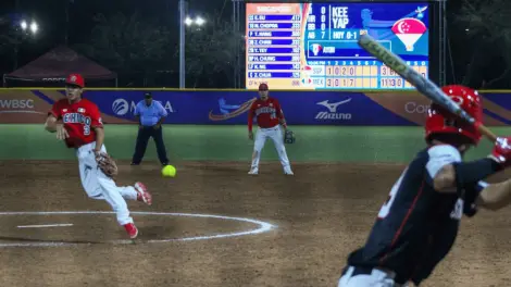 La Selección Mexicana de Softbol cerró de manera aplastante y convincente la primera fase en la Copa Mundial de Softbol sub-18 y consiguió su quinta victoria consecutiva y segunda por nocaut en el certamen ante Singapur con un marcador final de 11-3. Con esto, el tricolor se consagró como el único equipo en la competencia sin conocer la derrota.