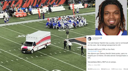 El partido entre Buffalo Bills y Cincinnati Bengals se suspendió por una tragedia con un jugador de la franquicia neoyorquina, Damar Hamlin.