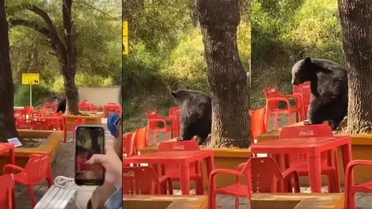 Un oso negro fue captado por alumnos de la Universidad Autónoma de Nuevo León (UANL) cuando al merodear por los pasillos, se rascó la espalda con un árbol en lo que parecía un baile para los presentes.