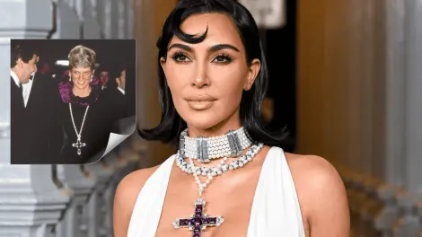 Kim Kardashian fue el centro de atención en la alfombra roja de la Gala Art + Film del Museo de Arte del Condado de Los Ángeles (LACMA), al portar un accesorio histórico: el pendiente de cruz de diamantes y amatistas, el cual le perteneció a la Princesa Diana de Gales.