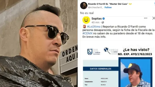 Luego que al mediodía se viralizara una ficha de búsqueda a nombre de Ricardo O'Farrill Lozano, ahora las redes sociales del comediante han publicado un mensaje donde se desmiente esta versión, asegurando que la supuesta ficha de la Fiscalía de la Ciudad de México es falsa.
