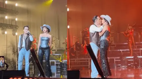 La intérprete de 'Qué agonía' salió al escenario para cantar junto a Nodal uno de los mayores éxitos de su padre, 'Por mujeres como tú', y se dieron el tiempo de cantar su popular y ahora polémico sencillo 'Dime cómo quieres'.