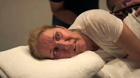 En el video de su documental, que ya está disponible en Prime Video, la cantante es filmada durante una consulta médica en la que es invadida por dolorosos espasmos musculares, que son controlados luego de que el personal especializado le administra un aerosol nasal.