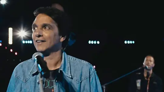 En el clip, el actor aparece como un músico callejero que tiene la oportunidad de tocar durante el concierto que Coldplay dará en un estadio.