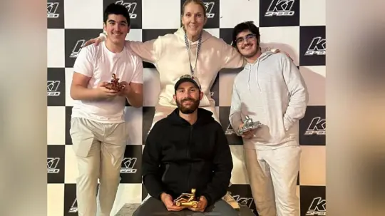 En la imagen se puede ver a la cantante sonriente junto a sus tres hijos: René-Charles, Nelson y Eddy, quienes también se muestran felices en torno a su madre.