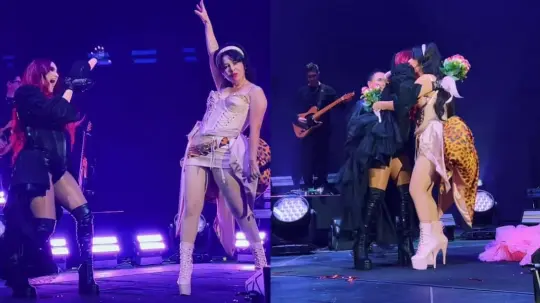 Los fans de Belanova vivieron un momento irrepetible en el Palacio de los Deportes cuando la vocalista Denisse Guerrero anunció a Dulce María como la artista invitada de la noche.