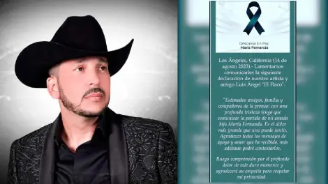 La oficina de 'El Flaco', difundió sus condolencias y un mensaje del cantante por la lamentable pérdida de su hija.