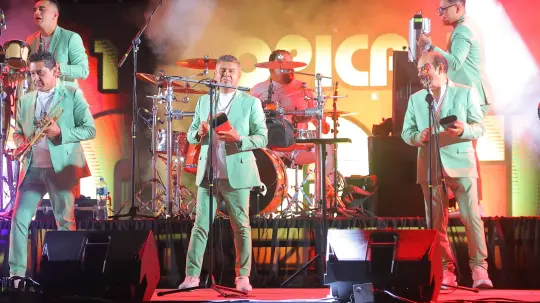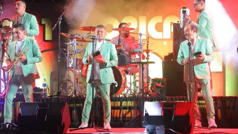 Fue entonces que, vestidos con elegantes trajes verdes, los músicos hicieron su aparición para arrancar su noche musical con el éxito “Duro a la baila”.