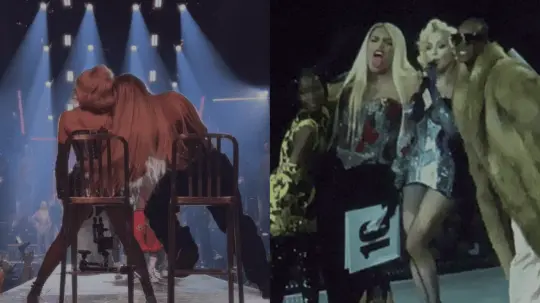 Rubias extensiones, maquillaje y un atuendo predominantemente negro es el que escogió Wendy para aparecer con Madonna; en su cuenta de Instagram compartió una fotografía en la que ambas aparecen sentadas de espaladas juntas sobre el escenario.
