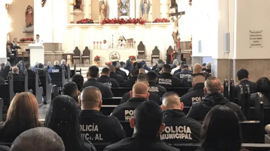 La mañana este viernes, el arzobispo Ruy Rendón Leal ofició una misa por el Día del Policía en la Catedral Metropolitana de Hermosillo.