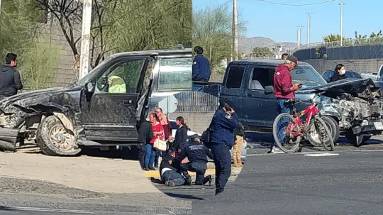 Alrededor de las 13:30 horas de este domingo, dos vehículos protagonizaron un aparatoso accidente de tránsito en la intersección del bulevar García Morales y Carlos Quintero Arce al poniente de Hermosillo, donde se reportaban personas prensadas.
