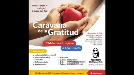 HERMOSILLO, SON.- El albergue Luz Valencia invita a la ciudadanía en general a realizar un donativo en la "Caravana de la Gratitud", para ayudarles a seguir brindando apoyo a personas con enfermedades en fase terminal que son abandonados por sus familias.