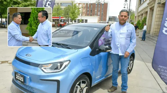 Alcalde Antonio Astiazarán entrega auto eléctrico a contribuyente cumplido