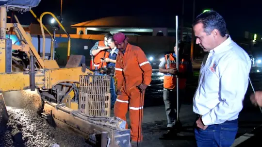 El alcalde de Hermosillo acompañó los trabajos de recarpeteo que se lleva a cabo en el bulevar García Morales en horario nocturno, donde las obras ya presentan un avance del 15 por ciento.