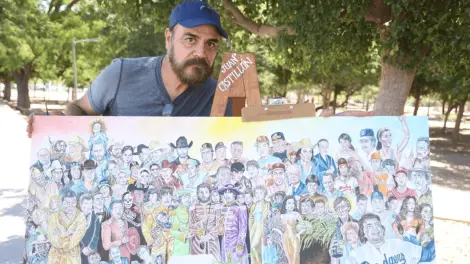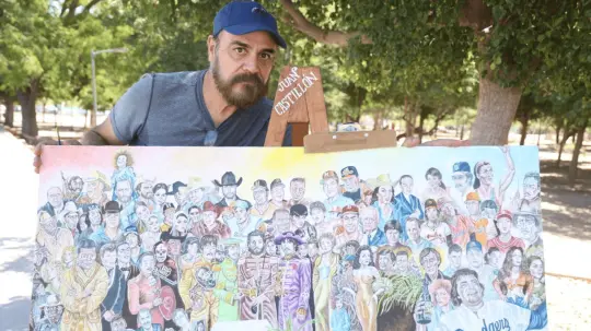 En su obra, reúne a icónicas figuras sonorenses del presente y el pasado. (Foto: Jesús Ballesteros/EXPRESO)