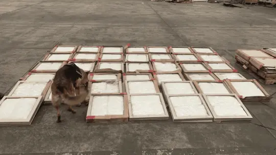 Los guardias nacionales, con colaboración de un binomio canino, ingresaron a una empresa de mensajería y paquetería en el municipio de Hermosillo. En el área de carga y descarga, seleccionaron al azar varios envíos para su inspección. El canino de la GN mostró interés en una tarima de madera que contenía 48 paquetes de losetas de cerámica destinadas a ser entregadas en un domicilio en el estado de Baja California.