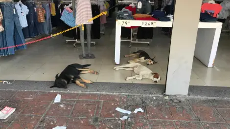 Varios locales en el centro de Hermosillo dan asilo a perros para protegerlos del calor extremo. Gracias al aire acondicionado en las entradas de los comercios, los 'lomitos' pueden refugiarse y mantenerse frescos durante estos días calurosos y sofocantes.