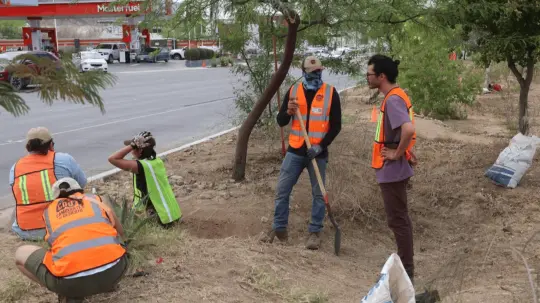 Este lunes se llevó a cabo una jornada de rehabilitación y mantenimiento en el jardín botánico del camellón ubicado en bulevar Morelos, esquina con Progreso, como parte del proyecto Caminantes del Desierto. Esta iniciativa busca replicar acciones de restauración ecológica, típicamente implementadas en cuencas altas, dentro del entorno urbano.