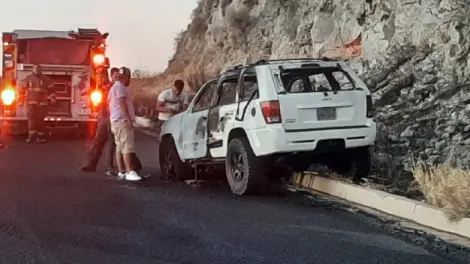 HERMOSILLO, SON.- Producto de una falla mecánica, una camioneta Cherokee, de color blanco, fue consumida por el fuego sin que se registrara personas lesionadas de este siniestro, en hechos ocurridos al norte de la ciudad.