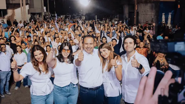 El candidato a la presidencia municipal por un segundo periodo celebró junto a jóvenes las encuestas de salida que le dan una victoria y llamó a defender el voto en las urnas.