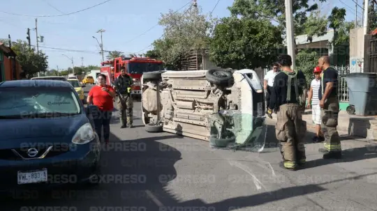 Una mujer resultó lesionada esta mañana al volcar su vehículo en la calle Alfonso Armenta y Segunda, colonia Palo Verde.