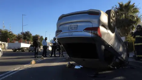 En tan solo daños materiales fue lo que dejó el volcamiento de un vehículo sedán, de color gris, luego de que circulara a exceso de velocidad sobre la avenida Rosales, del centro de Hermosillo.