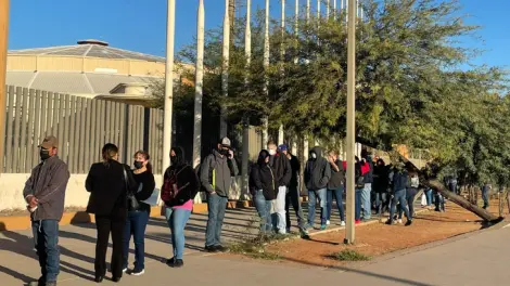 HERMOSILLO, SON.- Una larga fila de alrededor de 300 personas se formó desde temprana hora en el Centro de Usos Múltiples, uno de los nueve puntos de vacunación en el área urbana de Hermosillo y otros tres en la rural, ya que este lunes y hasta el viernes 04 de febrero se aplicará la dosis de refuerzo para personas entre 40 y 49 años de edad.