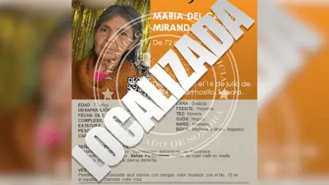 Esta noche, la Fiscalía General de Justicia del Estado de Sonora (Fgjes) informó de la desactivación del Protocolo Alba para la búsqueda de la adulta mayor, quien había sido vista por última vez el pasado 16 de julio tras salir de un centro recreativo campestre ubicado en la carretera a Sahuaripa kilómetro 24, en Hermosillo, Sonora. Posterior a ello, comenzó el operativo para localizarla y la difusión de su ficha desaparición.