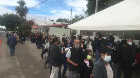 HERMOSILLO, SON.- Filas extensas, desatención en sana distancia, tráfico vehicular (con autos estacionándose sobre la vialidad de acceso) así como la presencia de la lluvia y confusión en la organización fueron las observaciones que se registraron la mañana de este jueves durante la jornada de vacunación para adultos mayores en el Hospital Militar Regional de Hermosillo.