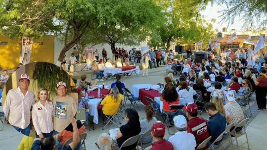La candidata estuvo acompañada por Jacobo Mendoza, candidato a Diputado Federal por el Distrito 5; y María Dolores del Río, candidata a Presidenta Municipal de Hermosillo.