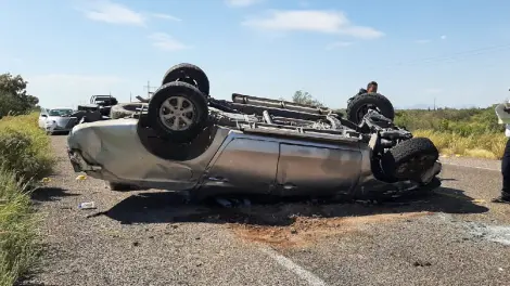 El accidente sobre la carretera Hermosillo-Bahía de Kino a la altura del kilómetro 89 dejó un vehículo volcado y dos personas heridas.