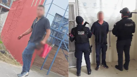 Elementos de la Policía Municipal acudieron al sitio y lograron la detención del hombre, quien presentaba manchas de sangre visibles en su ropa. Al inspeccionar la bolsa, confirmaron que contenía restos humanos, específicamente una cabeza decapitada.