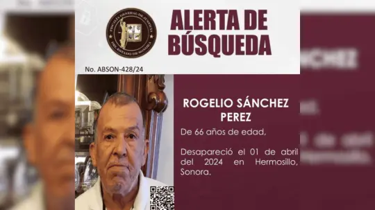 La Fiscalía General de Justicia del Estado de Sonora ha lanzado una alerta de búsqueda para la localización de Rogelio Sánchez Pérez, de 66 años de edad, quien desapareció el pasado 1 de abril de 2024 en la ciudad de Hermosillo.