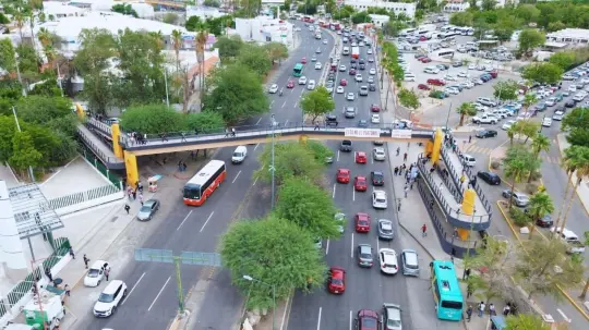 Integrantes de la comunidad estudiantil se manifestaron este miércoles por la tarde en el puente peatonal, ubicado sobre el bulevar Luis Encinas, frente a la Universidad de Sonora, para exigir un cruce seguro y accesible para todos los peatones.