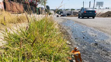 Vecinos de la colonia San Luis dicen estar 'hartos' del constante flujo de aguas negras que brota en el cruce entre las calles Lampazos y La Caridad, y que recorre un largo tramo hasta llegar a la calle El Cobre.