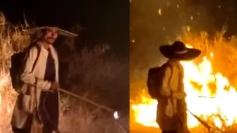 En dicho video se puede apreciar a un hombre el cual carga un improvisado lanzallamas el cual comienza a quemar la maleza que se encuentra alrededor de un monte cercano a las viviendas.