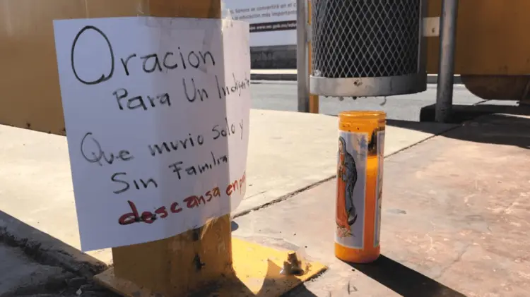 La leyenda en una cartulina: “Oración para un indigente, que murió solo y sin familia… Descansa en paz” fue como se encontraba en un rincón de la parada de camiones, esto en luto para el hombre que fue encontrado sin vida el pasado jueves.