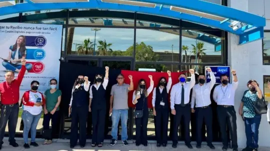 En Navojoa en punto de las 10:00 horas, los telefonistas colocaron la bandera rojinegra en los accesos principales de los diferentes centros de trabajo de la empresa de Telmex.
