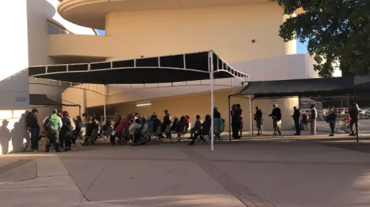 Antes de las 8:00 horas, ya comenzaba a integrarse una larga fila en las afueras del Centro de Usos Múltiples (CUM), uno de los ocho centros de vacunación en Hermosillo.