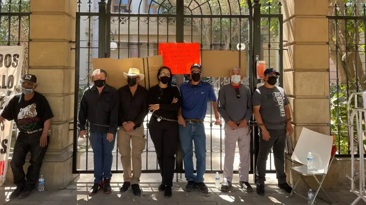 En protesta por la negación del Ayuntamiento de Hermosillo de devolverles sus prestaciones, jubilados y pensionados se encadenaron a la puerta principal de el Palacio Municipal.