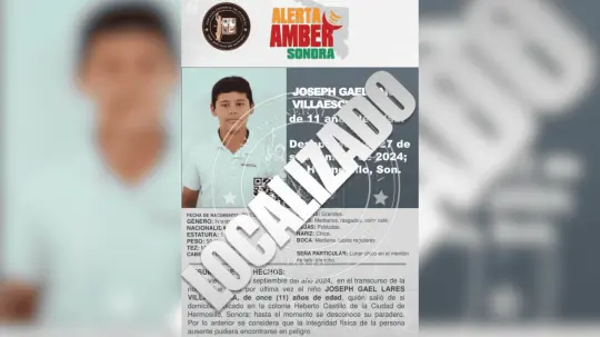 Luego de haber alertado la tarde de esta sábado sobre la desaparición de Joseph Gael Lares Villaescusa en Hermosillo, la Fiscalía General de Justicia del Estado de Sonora (Fgjes) informó que se desactiva la Alerta Amber.