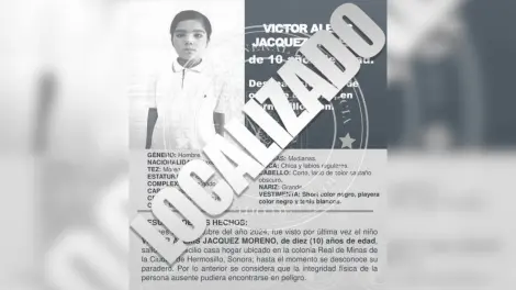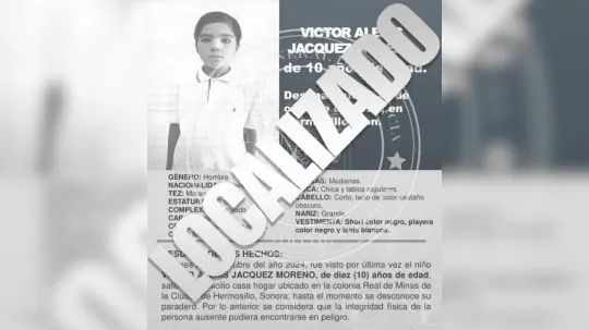 Luego de varias horas desde la activación de la Alerta Amber para la búsqueda de Víctor Alexis Jacquez Moreno, de 10 años, quien había desaparecido en Hermosillo, la Fiscalía General de Justicia del Estado de Sonora (Fgjes) informó que el menor fue localizado sano y salvo.