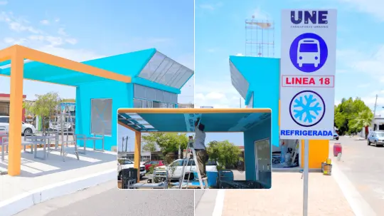 La estructura de la nueva parada de camión refrigerada ubicada en la colonia Emiliano Zapata fue mejorada con la instalación de un material para que los usuarios del Transporte Urbano tengan mejor sobra.