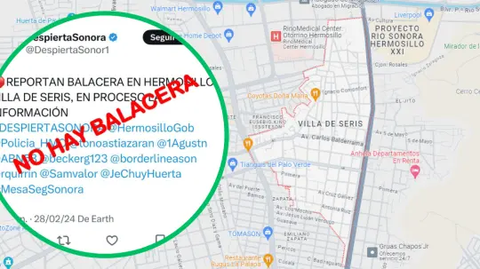 A través de las redes sociales de la corporación, así como del comisario Manuel Emilio Hoyos, se ha negado una supuesta balacera en la colonia Villa de Seris en Hermosillo, luego de reportes en redes que alertaban de este hecho.