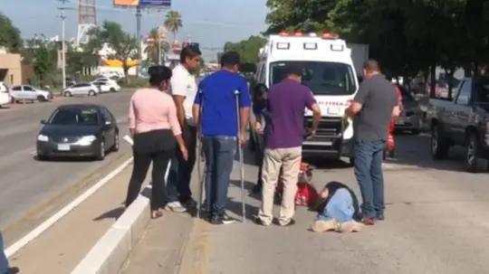 Socorristas de la Cruz Roja acudieron como primeros respondientes quienes hallaron a la víctima sobre el asfalto, los tripulantes del sedán y otros automovilistas tratando de auxiliar al hombre.