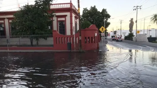 HERMOSILLO, SON.- La escuela primaria Leona Vicario, uno de los iconos de la ciudad, amaneció este jueves cercada en un costado por una fuga de agua en la calle Monterrey, afectando desde temprana hora a peatones y automovilistas por igual.