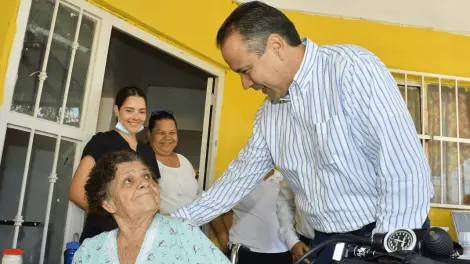 Antonio Astiazarán Gutiérrez, alcalde de Hermosillo, visitó la colonia Magisterial donde residen María Socorro Villa Durán, de 81 años de edad, y su nieto Francisco Javier Jiménez Pinelli, de 27, con parálisis cerebral, quienes fueron los primeros beneficiados del programa 'Salud H en tu Casa'.